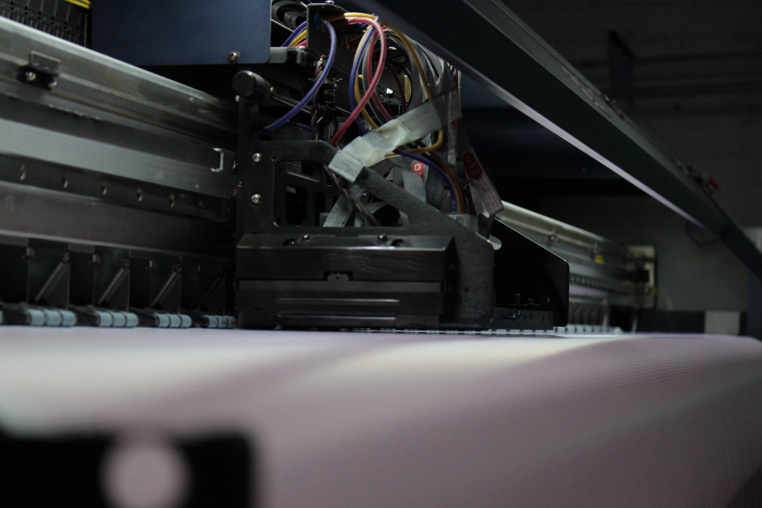 Impresión de lona brillante en gran formato con tinta ecosolvente.